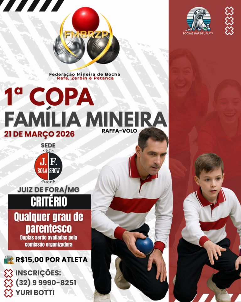Portal institucional da Federação Mineira de Bocha Rafa, Zerbin e Petanca (FMBRZP), entidade responsável por estruturar, organizar e desenvolver as modalidades de bocha em Minas Gerais.